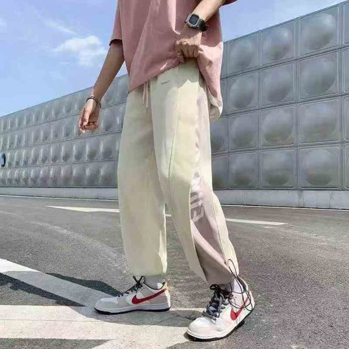 其他/其他 ?523条,港风休闲裤女2025夏季新款宽松阔腿裤薄款抽绳束脚拼接学生运动裤...